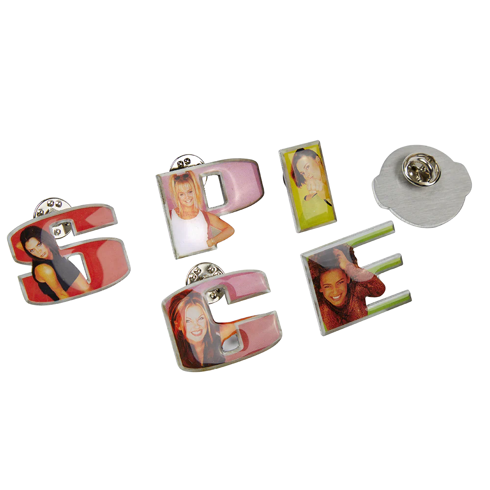 Customise your outfit with this vibrant set of 6 butterfly back pin badges, featuring the SPICE album and Spiceworld logo. Including a black velour box to keep them safe and secure.