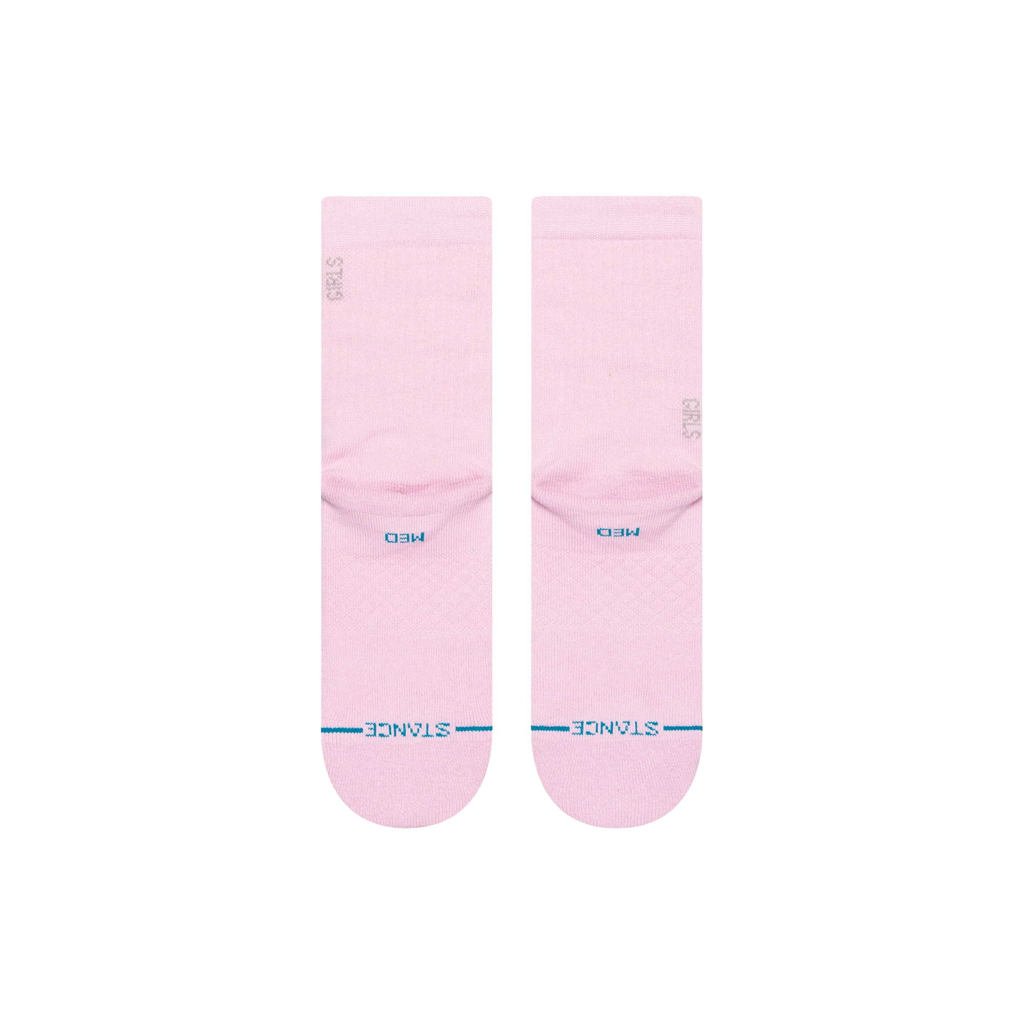 Luxury classic pink crew socks with bejewelled ‘SPICE GIRLS’ across the ankle, as part of the Stance x Spice Girls collaboration collection.
